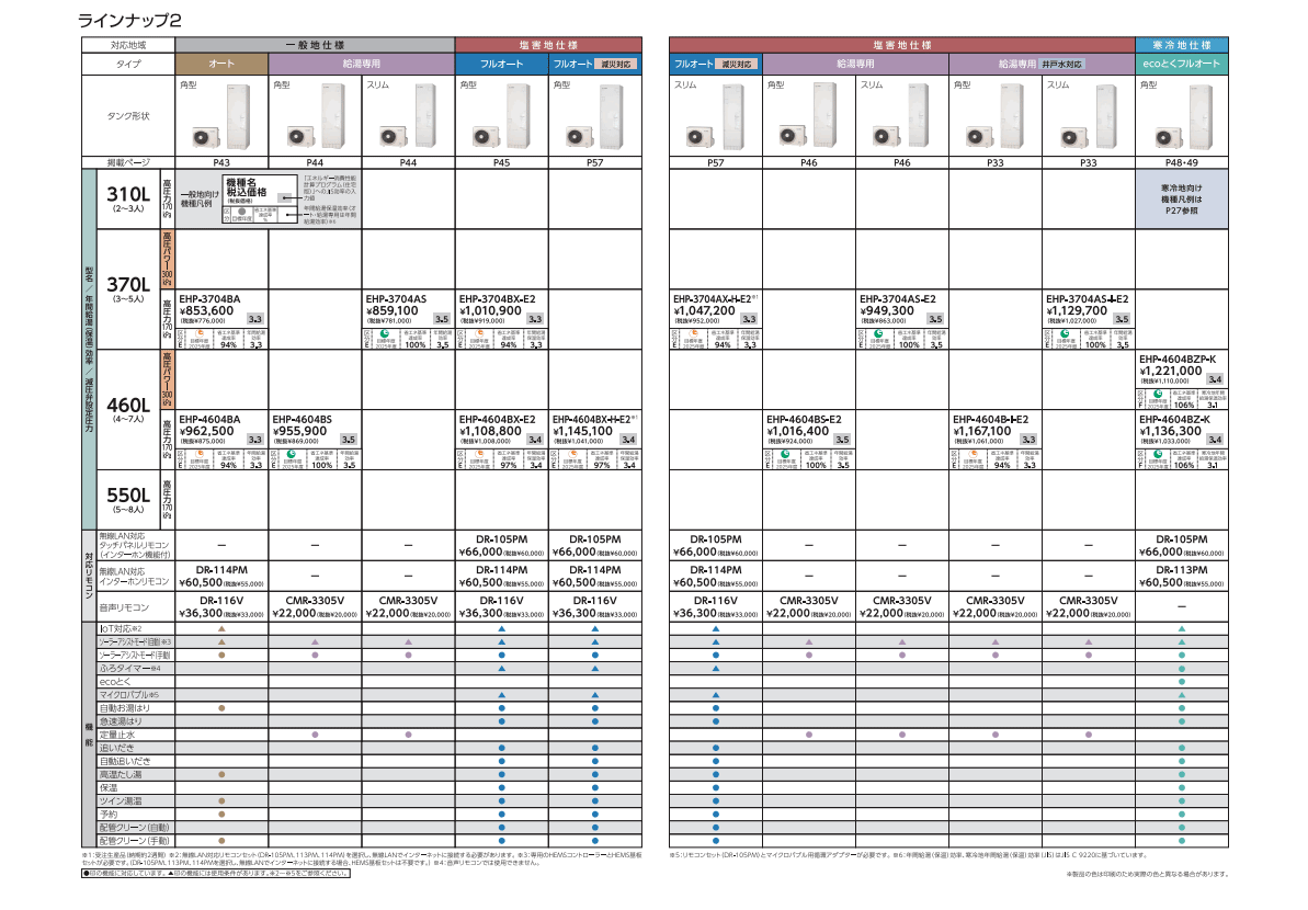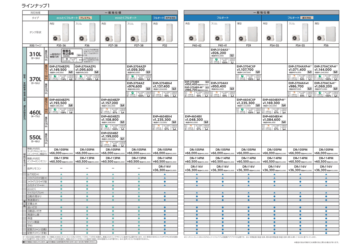 長府製作所:タンク容量別商品一覧