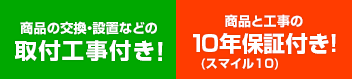 ・アフター新しい商品で快適ライフ!さらに商品と工事の10年保証「スマイル10」で工事後も安心が続きます。